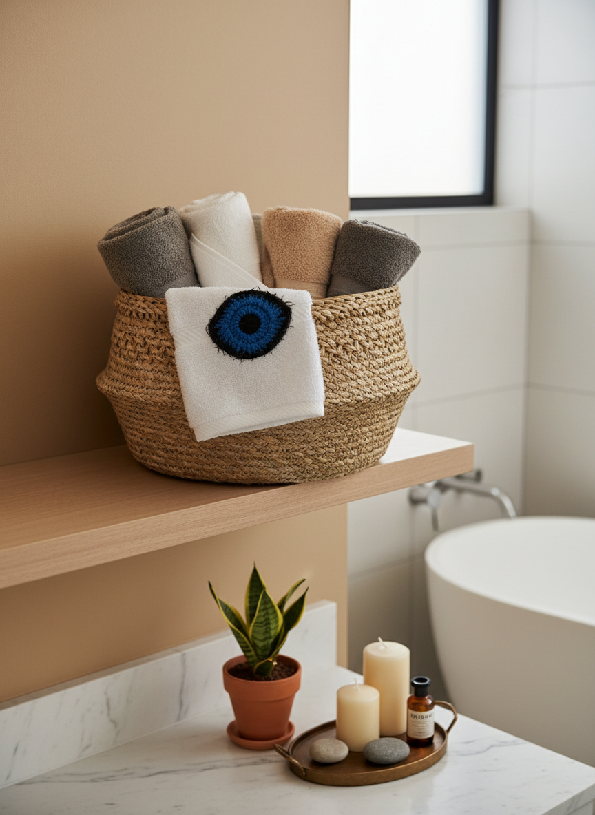 Whether you’re refreshing your own bathroom décor or searching for a distinctive gift, this hand towel combines everyday functionality with artisan beauty. The protection eye symbol carries cultural significance across Mediterranean and Middle Eastern traditions, believed to ward off negative energy while adding visual interest.