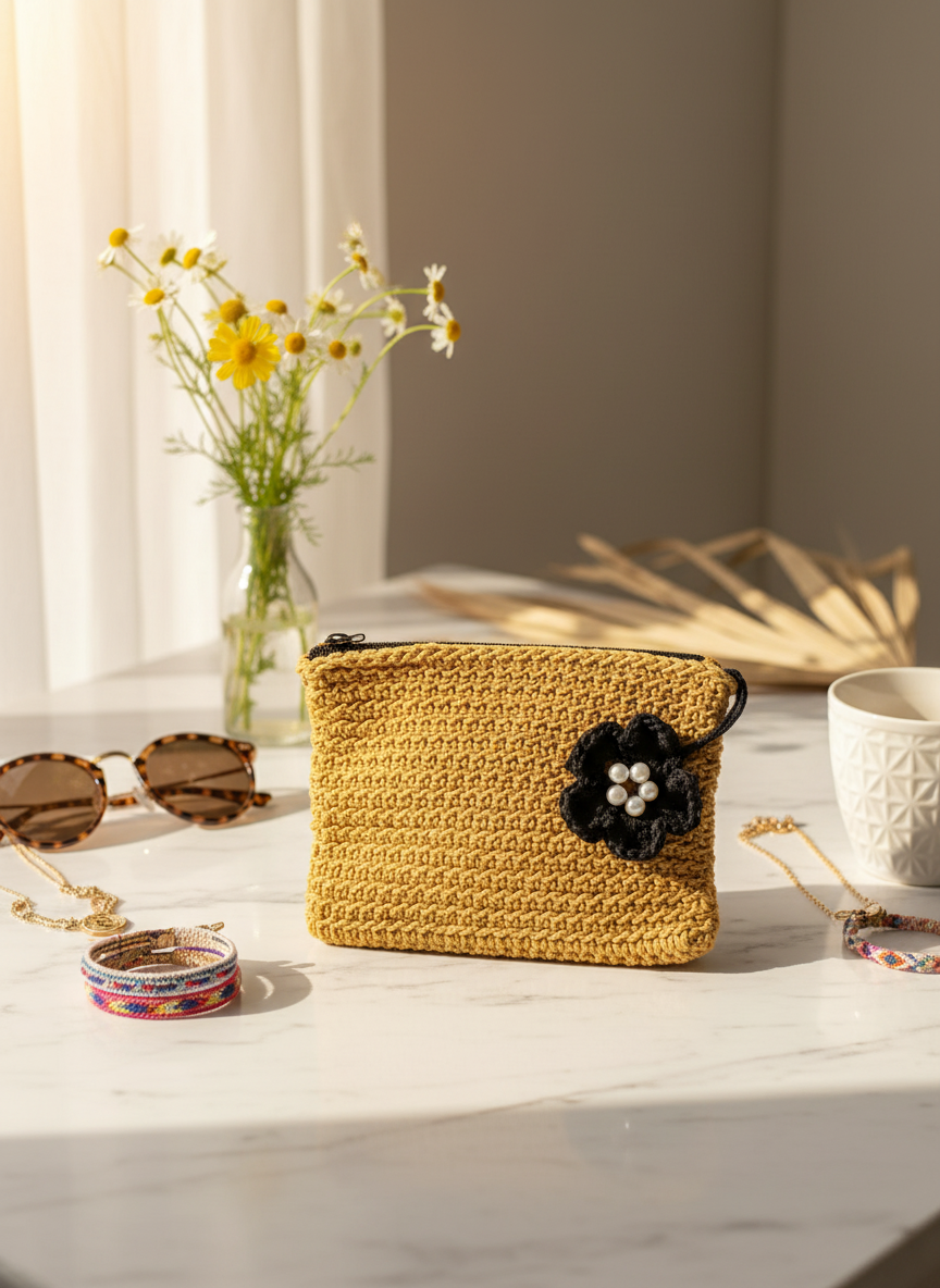 Whether you’re organizing your handbag, carrying essentials for a day out, or looking for a unique gift, this mustard crochet pouch delivers both style and substance. The warm, cheerful color brightens any outfit and pairs beautifully with neutrals, denim, or autumn tones.