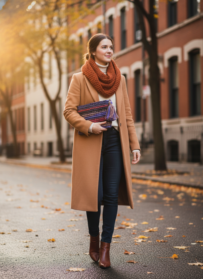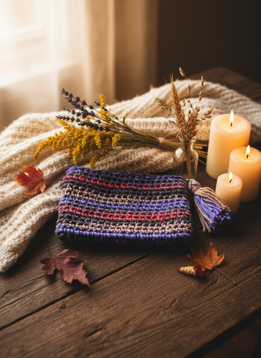 Whether you’re attending a holiday gathering, enjoying a cozy dinner, or adding flair to your everyday autumn style, this multicolored crochet clutch brings warmth and sophistication. The textured stitchwork catches the light beautifully, while the seasonal colors create visual depth and interest.