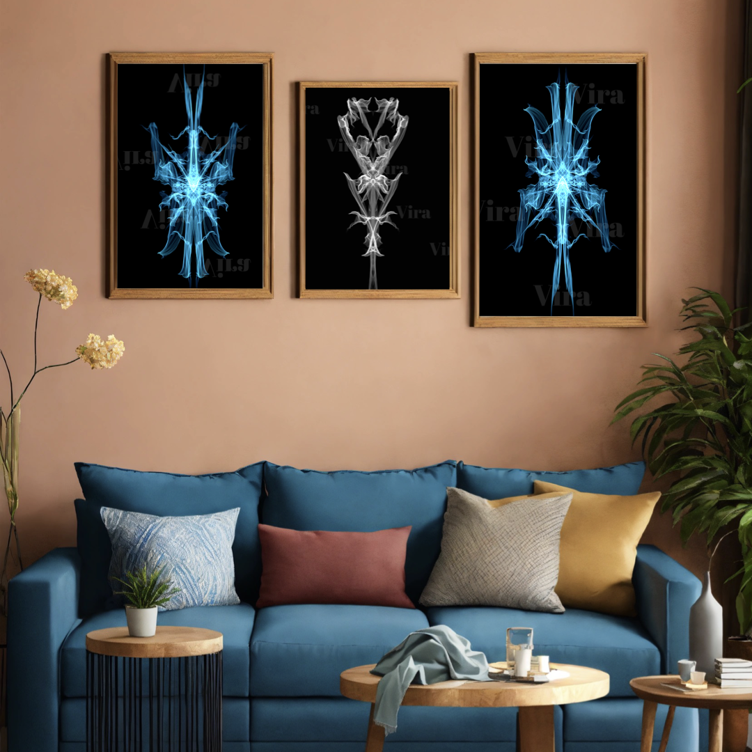 Dynamic, vibrant, glowing artworks full of motion and depth.